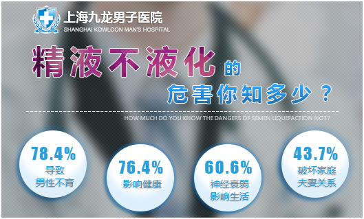上海九龙医院 电话询问【精液不液化】在正常精液射出后,在精囊凝固酶的作用下变为胶冻状,经15~30分钟在前列腺液化酶的作用下变为液体。如果离体精液在室温下(22~25℃)60分钟仍不液化或仍含有液化的凝集块,称为精液不液化症!自我检测,你的精液液化时间正常吗?不清楚是否正常点击此处>>>