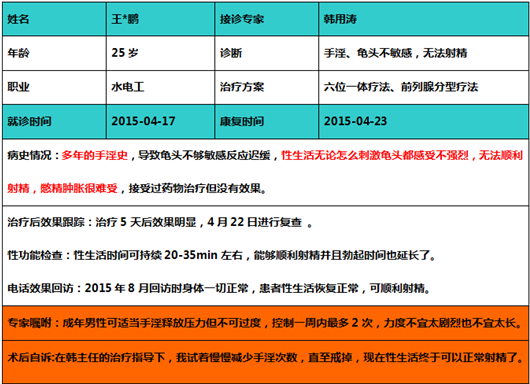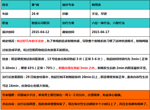 案例一:过度手淫,射精阀值过低引起早泄