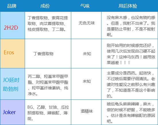 据我了解,延时类喷剂的成分不外乎中药和西药这两大类,根据作用机理的不同可以分为物理延时类和神经麻痹类两种成分类型。