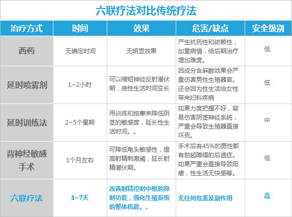现代医学证明,目前虽然像喷雾剂,训练法等办法能有效果延长性生的时间,但是后期带来的危害是数不胜数的,而我们要考虑的长远一点,用延时的药物或其他办法都只能起到延时的作用,并不存在治疗的作用,所以为了健康一定要及时的去正规的医院接受治疗。我有一些问题不明白,点击这里询问在线医师》》》